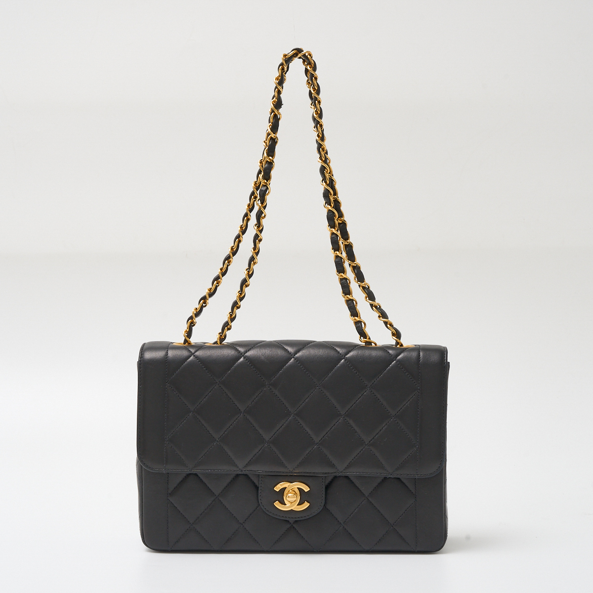 - CHANEL シャネル マトラッセ25 Wチェーン ショルダーバッグ 4番台(1997年頃~製造) ハンドバッグ ラムスキン レザーブラック×ゴールド