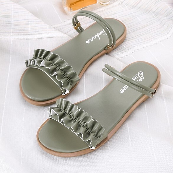 - New☆2wayサンダル フリルデザイン グリーン 24.5cm