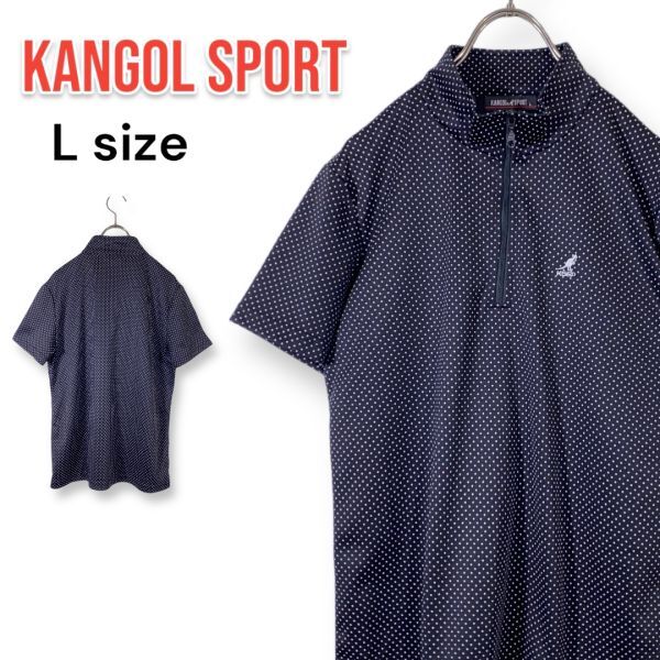 - KANGOL カンゴールスポーツ ハーフジップ 半袖シャツ Lサイズ 黒 ドット柄 ロゴ刺繍 レディース スポーツ 速乾性 ポリエステル