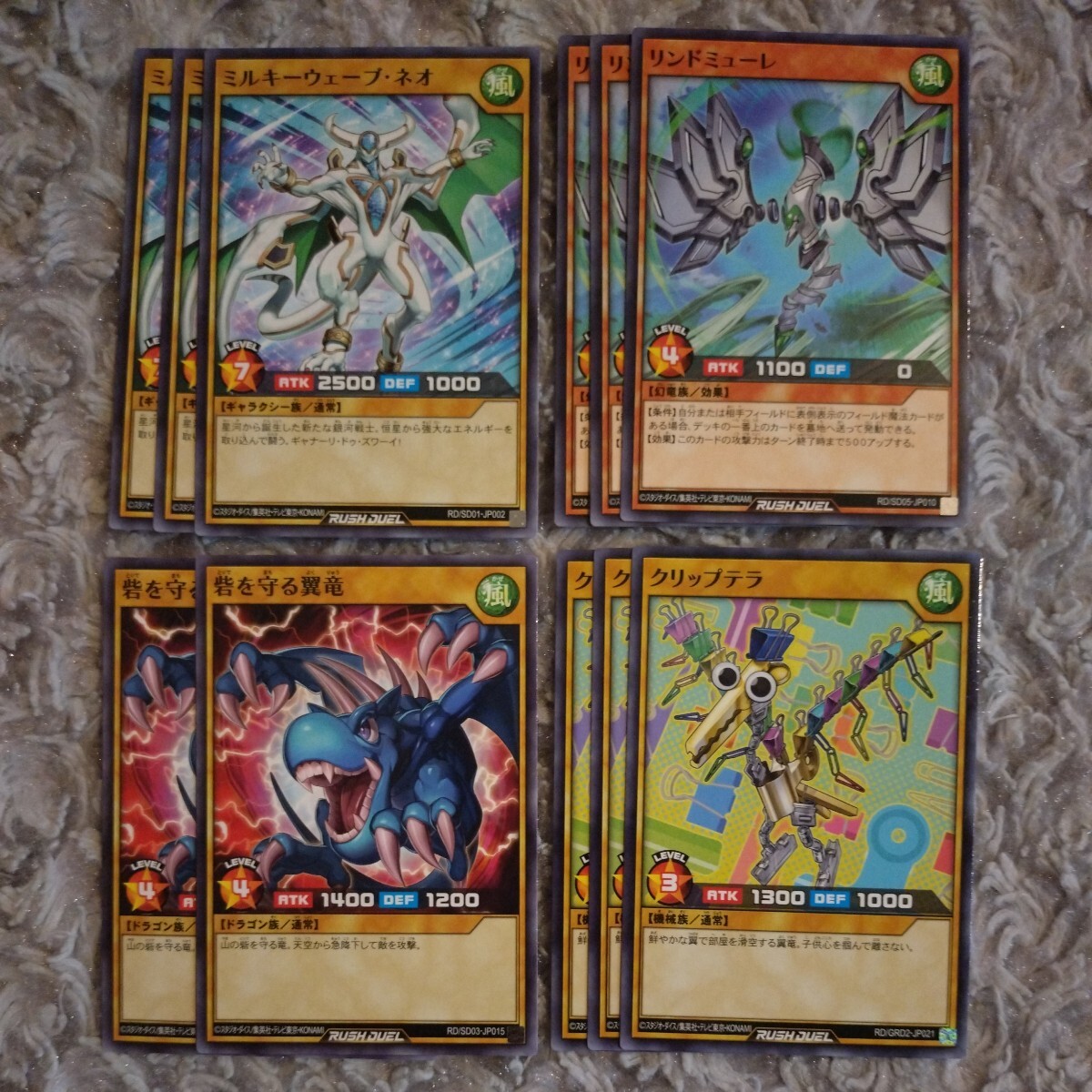 - 遊戯王 RUSH DUEL ☆ 風 4種11枚セット ☆ ミルキーウェーブ・ネオ リンドミューレ 砦を守る翼竜 クリップテラ ☆ ラッシュデュエル