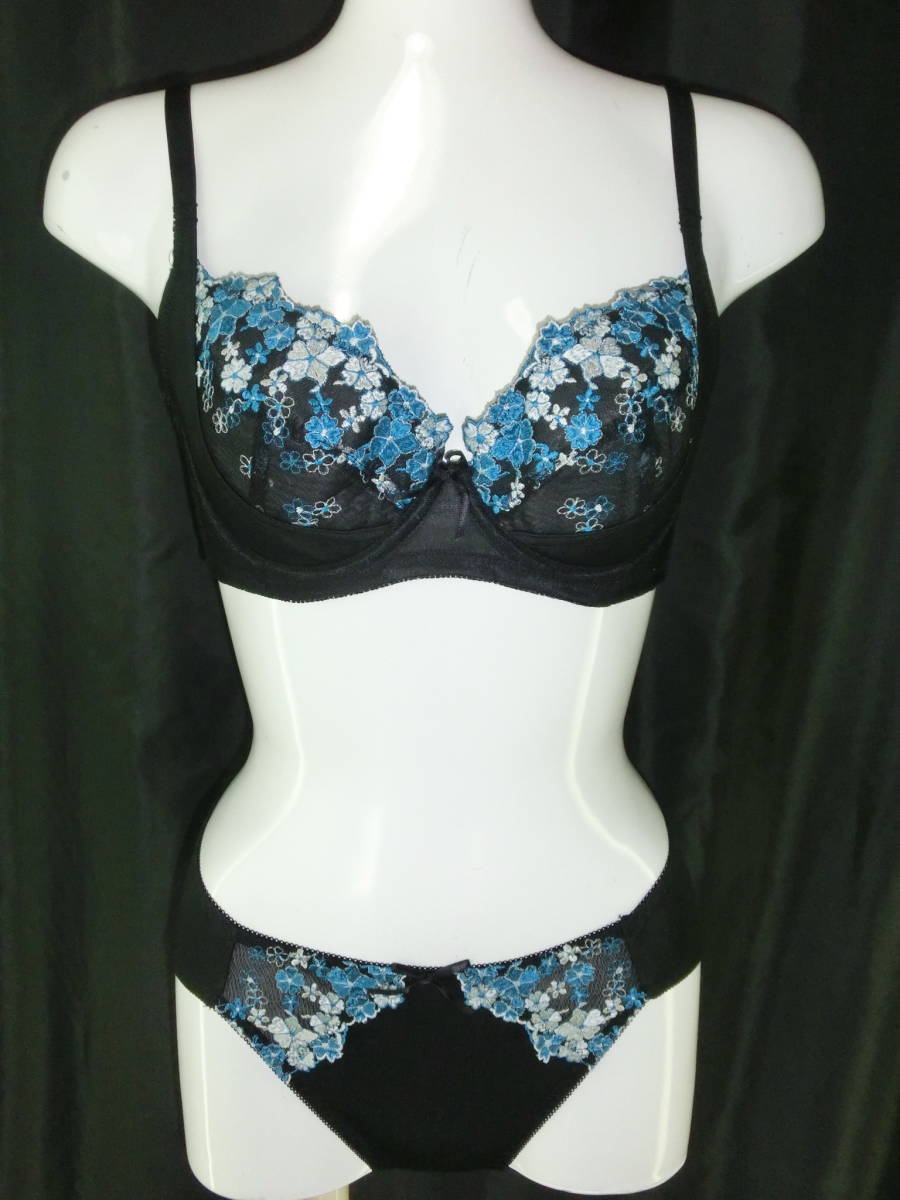 - ☆【D75 L】ブラック 華やかリフトアップブラジャー・ショーツセット《63》