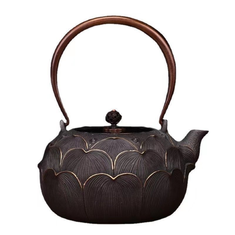 - 鉄瓶 鋳鉄 急須 古風鉄瓶 鉄分補給 提梁壺 茶壺 水壷 煮茶壷 鉄びん 茶道具 おしゃれ 蓮