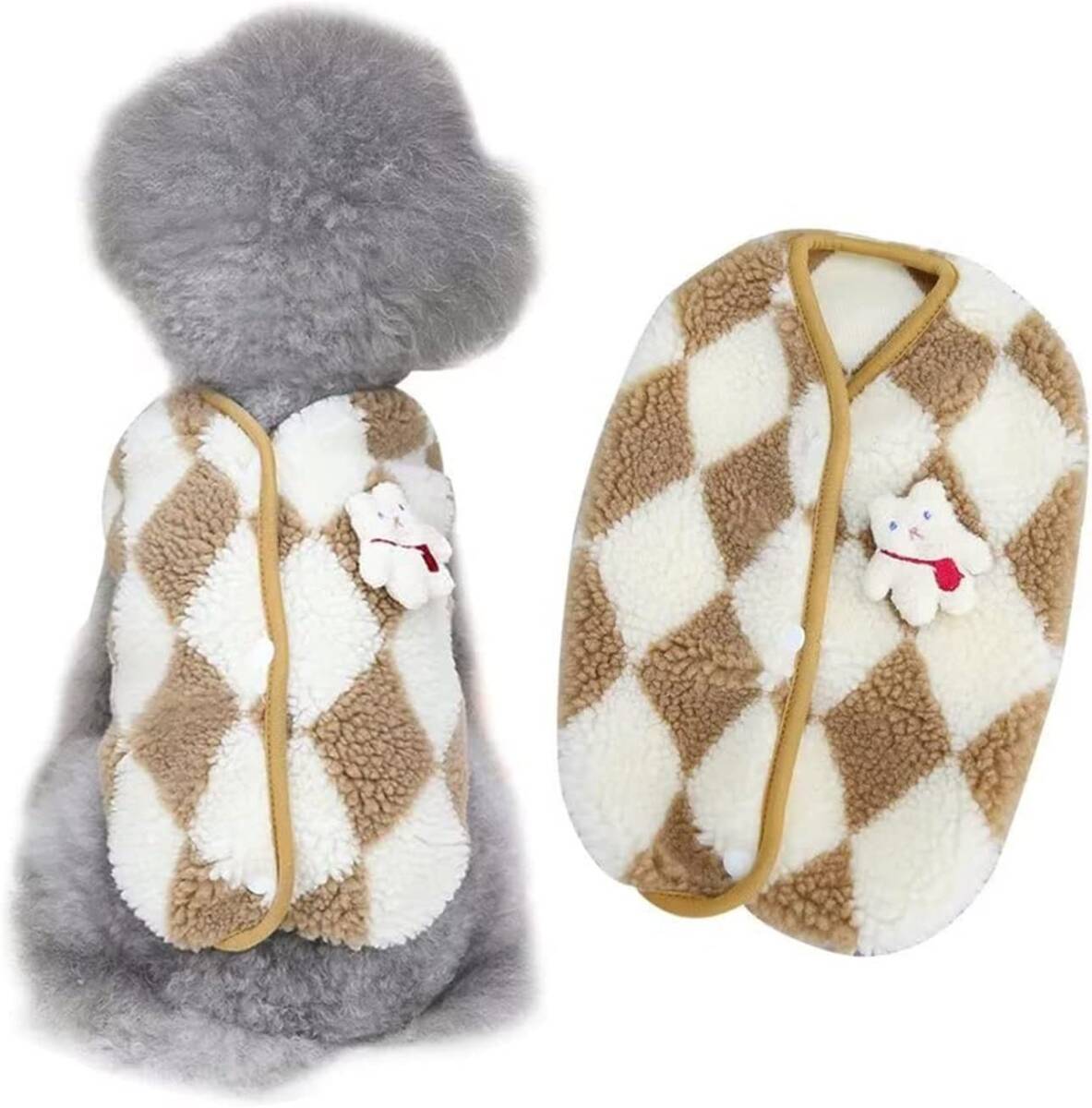 - ペット服 犬服 冬服 背中開き かわいい 暖かい もこもこ ドッグウェア ひし形 柔らかい 厚い 犬洋服 ノースリーブ ふわふわ 犬の服