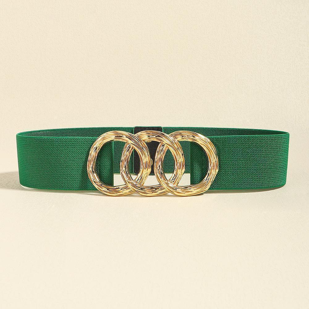 - 【緑色】66cm~90cm【ゴールドバックル 幅広 ゴムベルト】レディース