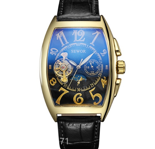 > 腕時計新品 機械式自動巻 3針 トゥールビヨンデザイン 数字盤 メンズ ウォッチ 昼夜表示 本革ベルト 生活防水 紳士用 /黒