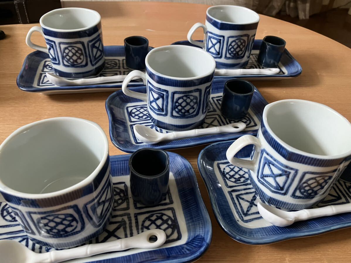 - メ4203 未使用 昭和レトロ藍色 和風 スプーン、ミルク入れカップア&ソーサー