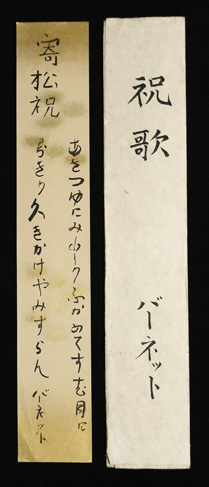 - <C194884>【真作】ランセス・ホークス・キャメロン・バーネット(バーネット大佐夫人) 肉筆短歌短冊「寄松祝」