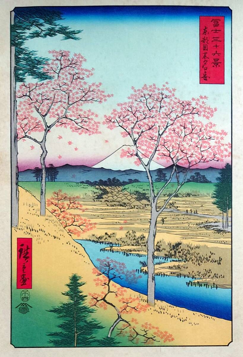 - f240502010〇彩色木版画 広重 富士三十六景 東都目黒夕日か岡 東京都目黒区目黒 アダチ版画研究所 昭和50年〇和本古書古文書