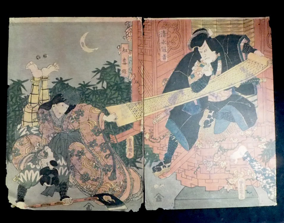 - 浮世絵木版画 錦絵 役者絵 三代目歌川豊国 ( 歌川国貞 ) 「 清水冠者 紅梅姫 」 SMN604(18-9)
