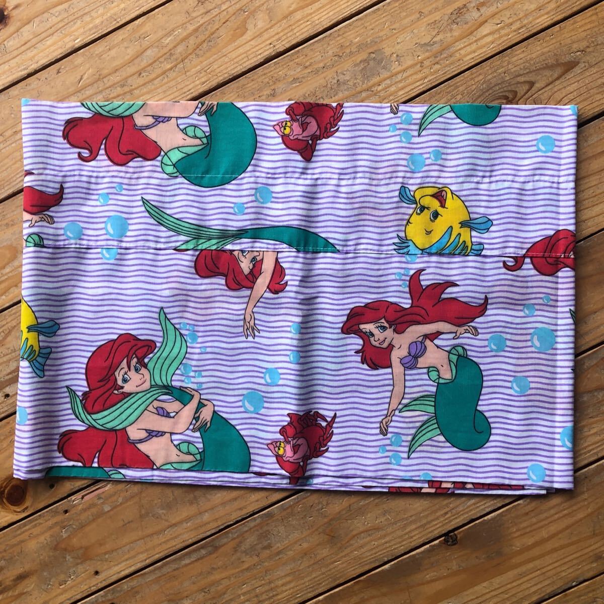 - USAヴィンテージ 布切れ 布地 端切 袋状 シーツ リメイク生地 素材 ディズニー Disney プリンセス アリエル キャラクター 総柄 B1978
