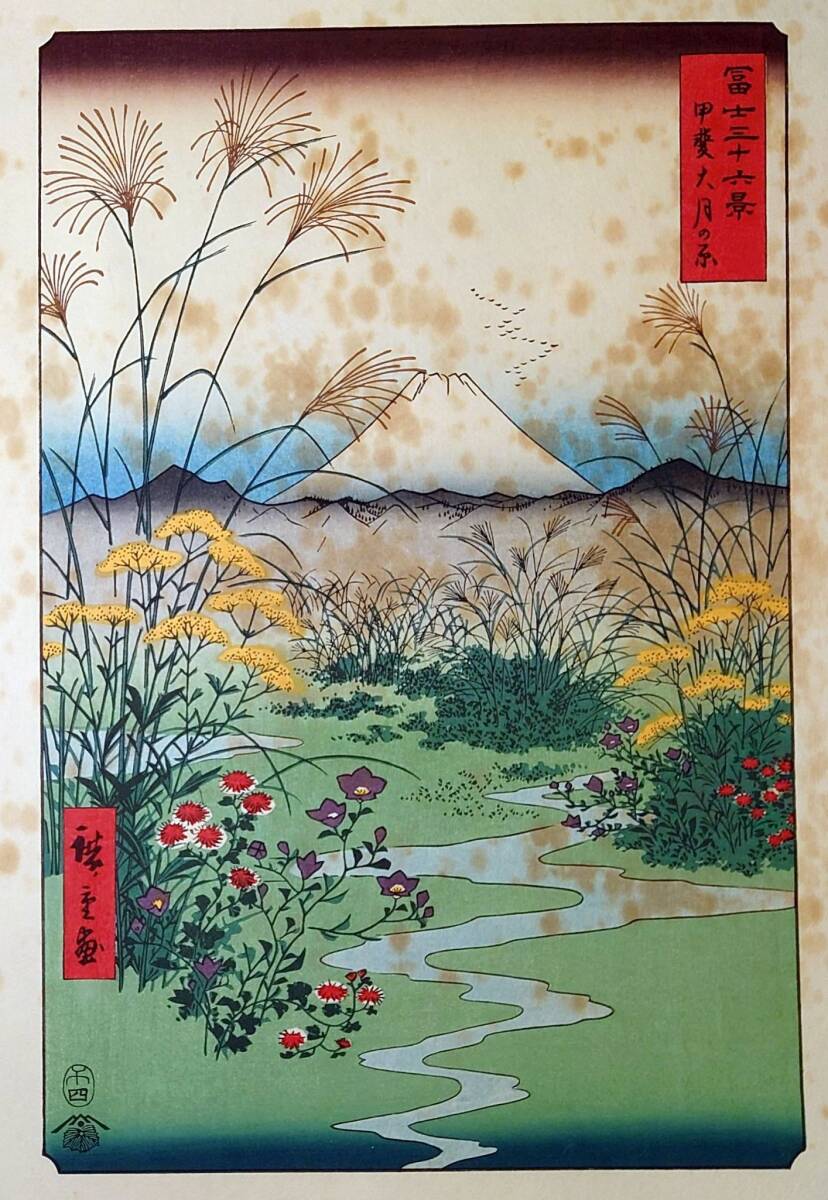 - f240502031〇彩色木版画 広重 富士三十六景 甲斐大月の原 山梨県大月市 アダチ版画研究所 昭和50年〇和本古書古文書