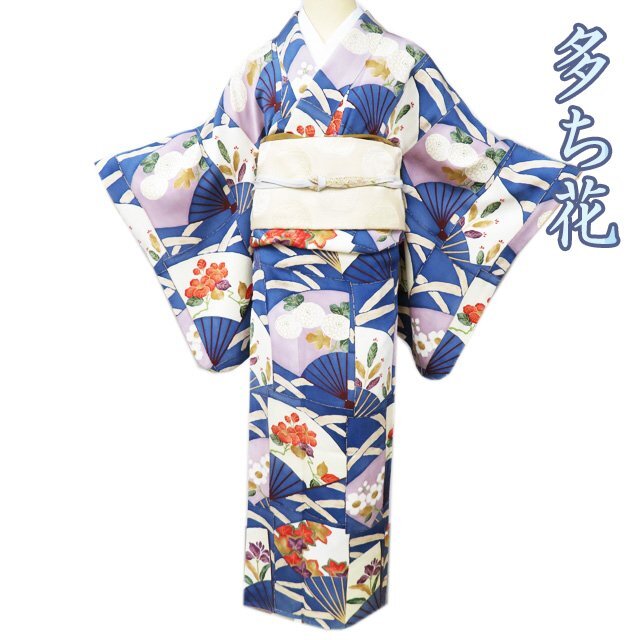 > 特選 付下げ 付け下げ 訪問着 着物 中古 正絹 袷 多ち花 縮緬地 扇面に花の図 薄花桜色 多色 身丈157cm 裄62cm M きもの北條 A1011-3