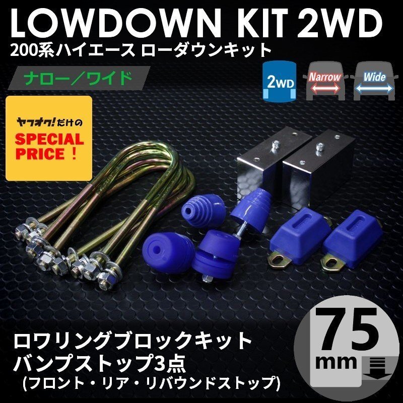 > ●ティスファクトリー● ハイエース 200系 1型-7型 2WD ローダウンキット 4 [ブロック75mm (3インチ) + バンプ3点] S-GL DX ナロー ワイド