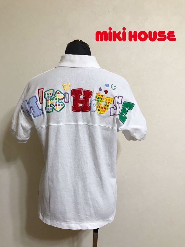 - 【美品】 MIKIHOUSE ミキハウス レディース 鹿の子 ポロシャツ 刺繍 ワッペン ビッグロゴ トップス サイズLM 半袖 白 日本製 12-5581-224