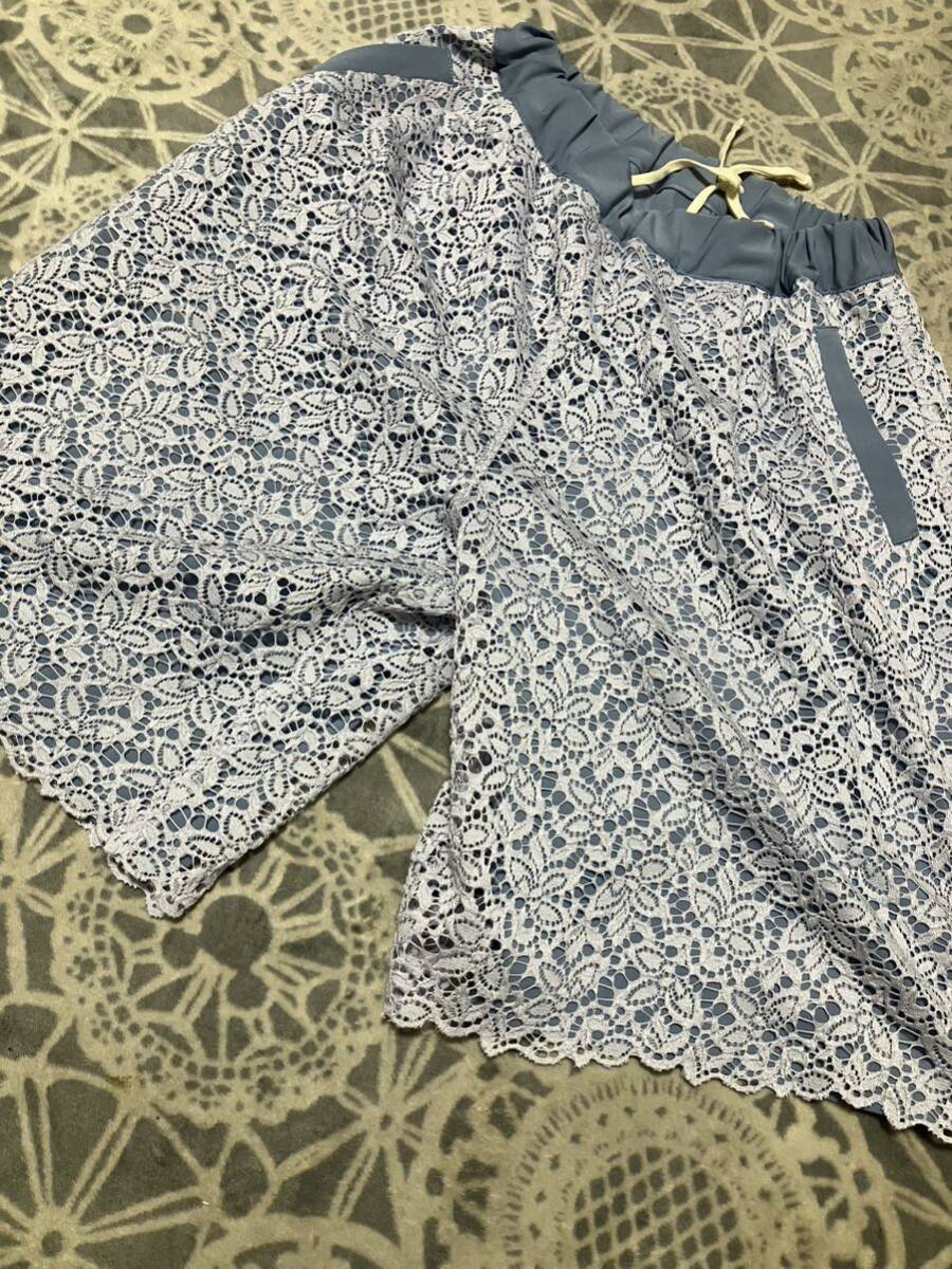 - Quartorze キャトルズ レースデザイン ライトブルー ハーフパンツ