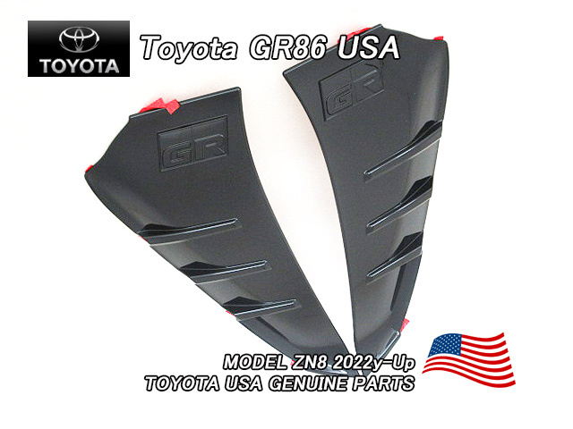 - トヨタGR86/TOYOTA/ZN8ハチロク純正USフェンダーヴェントインサート左右/USDM北米仕様GR文字入り艶有ブラックフェンダーダクトフィン黒色