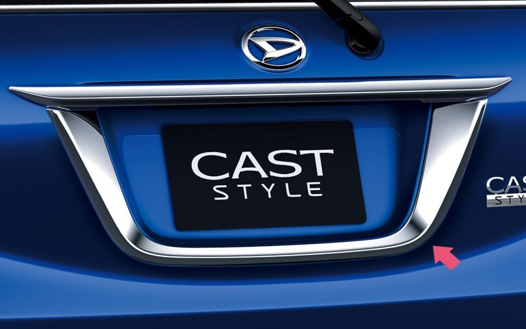 > キャスト 200系:純正 リヤライセンスガーニッシュ(メッキ/スタイル、スポーツ用)(廃盤 残り在庫わずか)