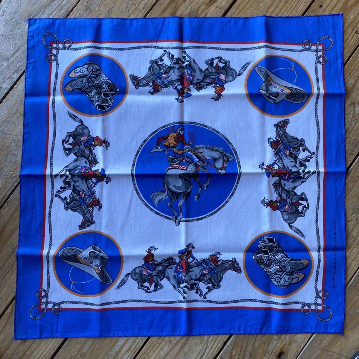 - 送料無料 Vintage カウボーイ柄 バンダナ アメリカ仕入れ 雑貨 ブルー ハット ブーツ 馬 カントリー ハンカチ ヴィンテージ A1140