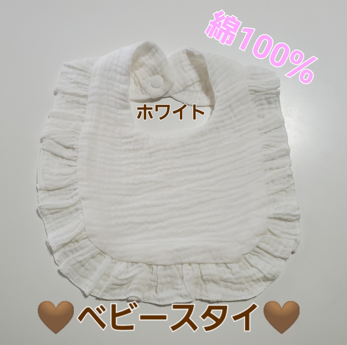 - 新品 綿100% ベビー スタイ ホワイト 白 赤ちゃん よだれかけ 可愛い フリル 無地 両面使用可能!! 女の子 Fサイズ コットン100
