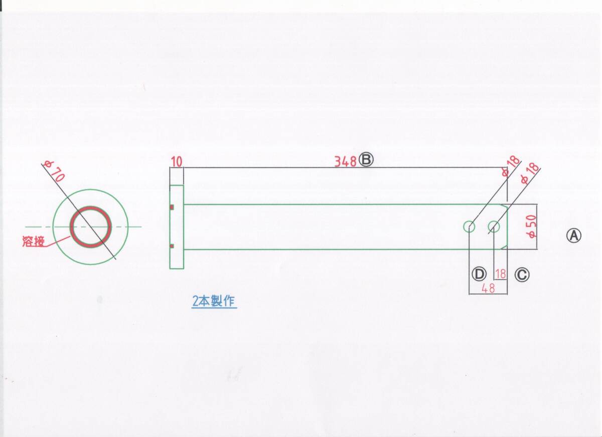 - NO 1781 Φ50用 溶接ツバ下348mm バケットピン 2本1セット