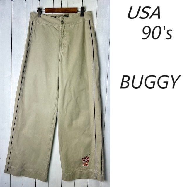 > USA古着 90s パイピングサイドライン ワイドバギーチノパンツ 9/10 ベージュ オールド ヴィンテージ アメリカ BUGGY HIPHOP L~XL ●233