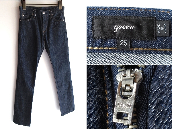> 美品 green グリーン (現HYKE/ハイク) TALONジップ TIGHT STRAIGHT タイトストレート デニムパンツ w25 インディゴ 濃紺 リジッド近 スリム