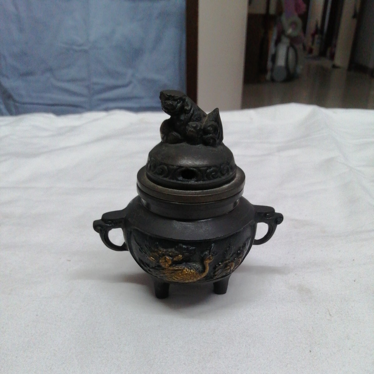 - 【獅子香炉 香道具 鳳凰 金 香炉三足 茶道具 金属 】 送料520円可能