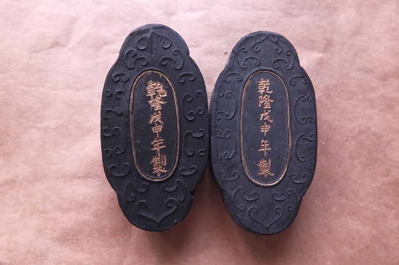 - 唐墨 古墨 墨寶 2個52g 程君房 書道書画 習字 年代物