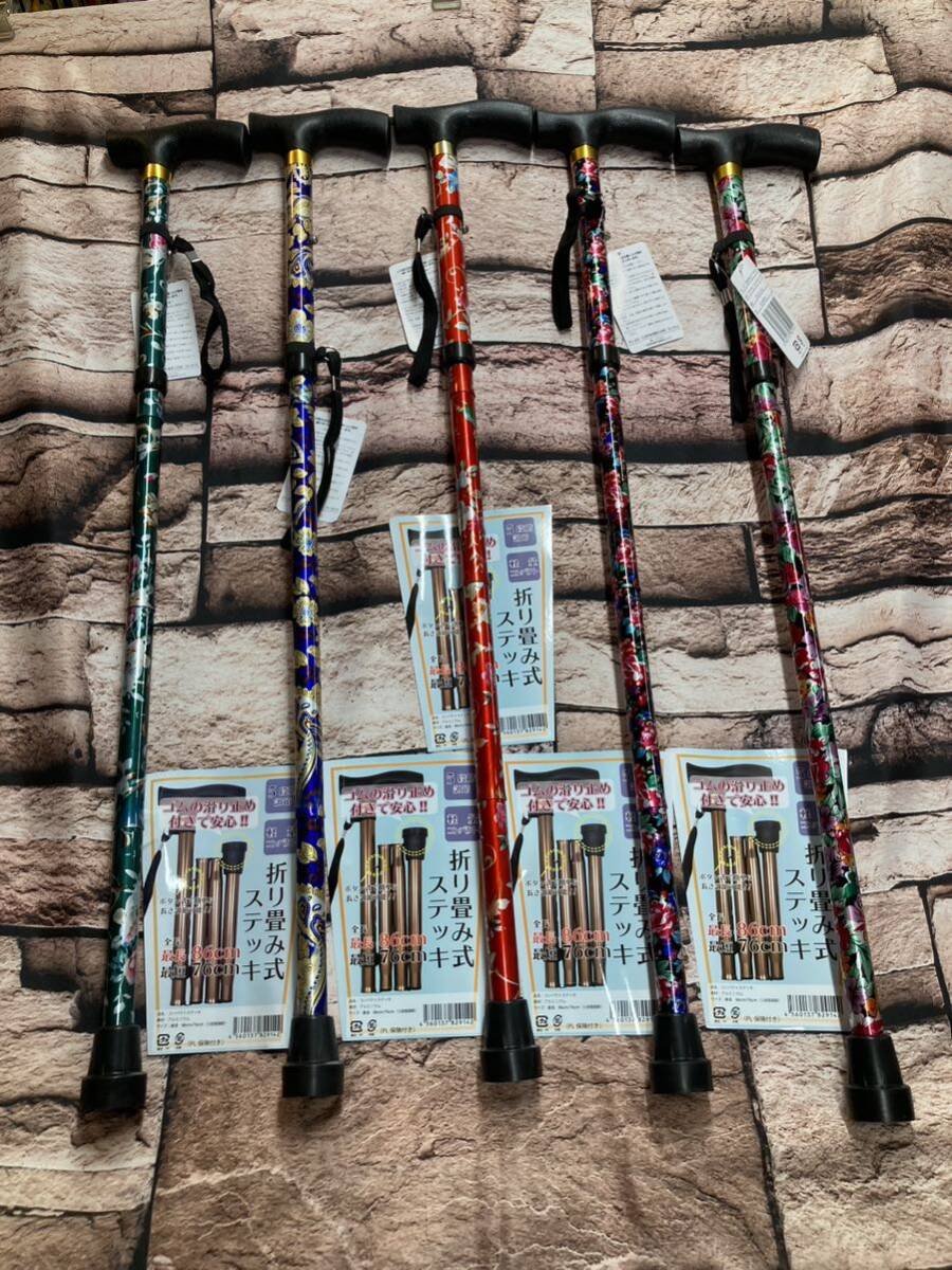 - 送料無料!『PL保険付き』ゴムの滑り止め付きて安心!軽量 5段階調整折り畳み式コンパクトステッキ(画像から)1個