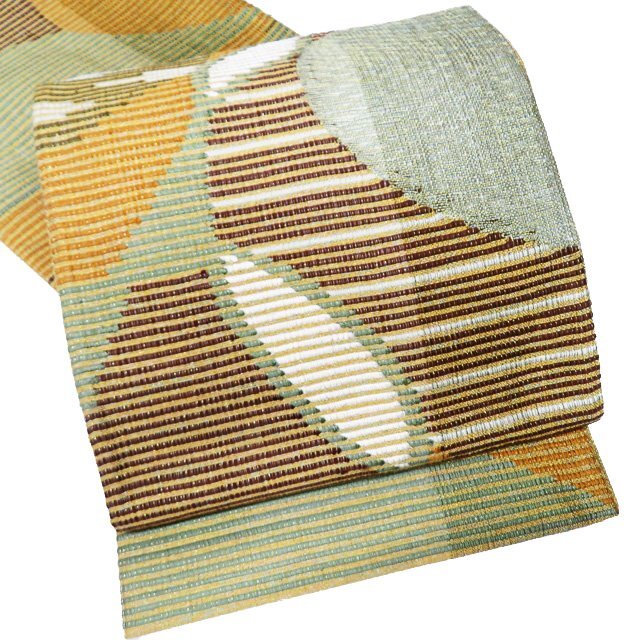 > 袋帯 未使用 正絹 セミフォーマル 仕立て上がり 六通 金通し 柳染色 焦茶色 黄土色 きもの北條 A1021-14