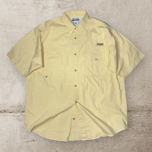 - ★美品★Columbia PFG 半袖シャツ XLT イエロー系 ピスネーム ベンチレーション 刻印ボタン コロンビア クリーニング プレス済み USED 1314