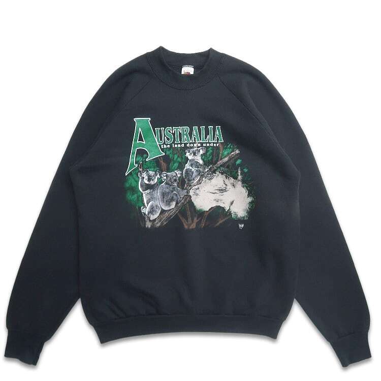 - 古着 90年代 USA製 フルーツオブザルーム プリントスウェット トレーナー アニマル コアラ ブラック 表記:XL gd402435n w40429