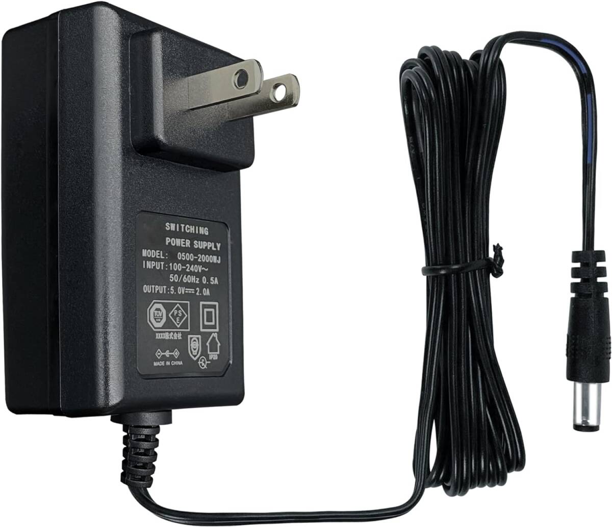 - 5V 2A 10W 1.8Mロング電源アダプター、AC DCスイッチングアダプター(入力100-240V、出力5ボルト2アンペア2000mA)PSE認証済み