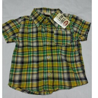 - 新品 タグ付き チェック柄 襟付き 半袖シャツ サイズ80 西松屋 ELFIN DOLL 黄