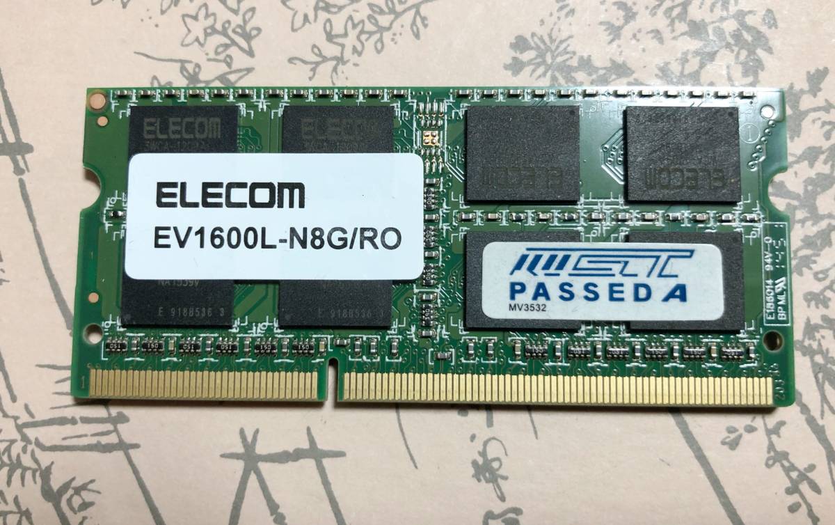 - ELECOM ノートPC用増設メモリ DDR3L-1600 8GB X1枚 低電圧 EV1600L-N8G/RO 動作品
