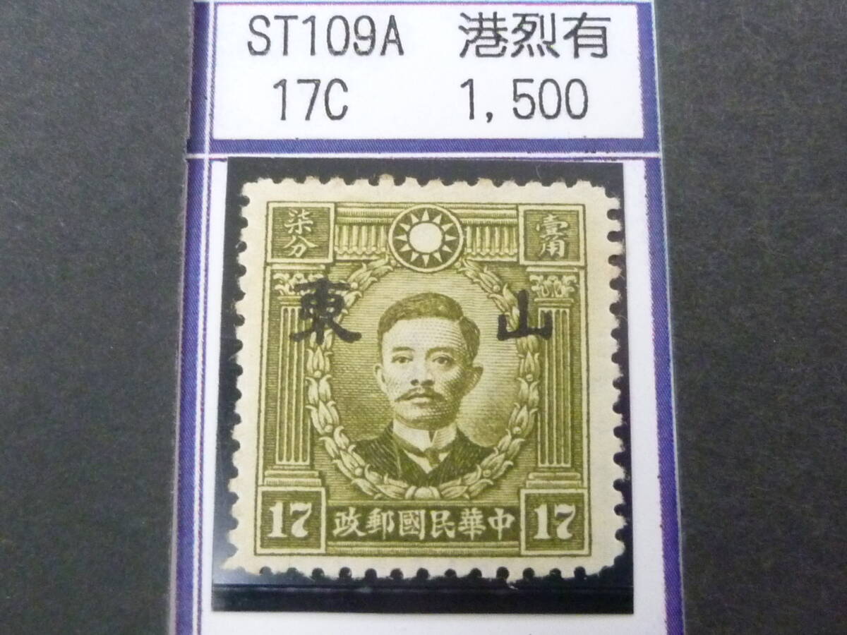 - 24L M №113 中国占領地切手 山東 1941年 香港版烈士像(小字) 有水 17c 未使用OH・VF