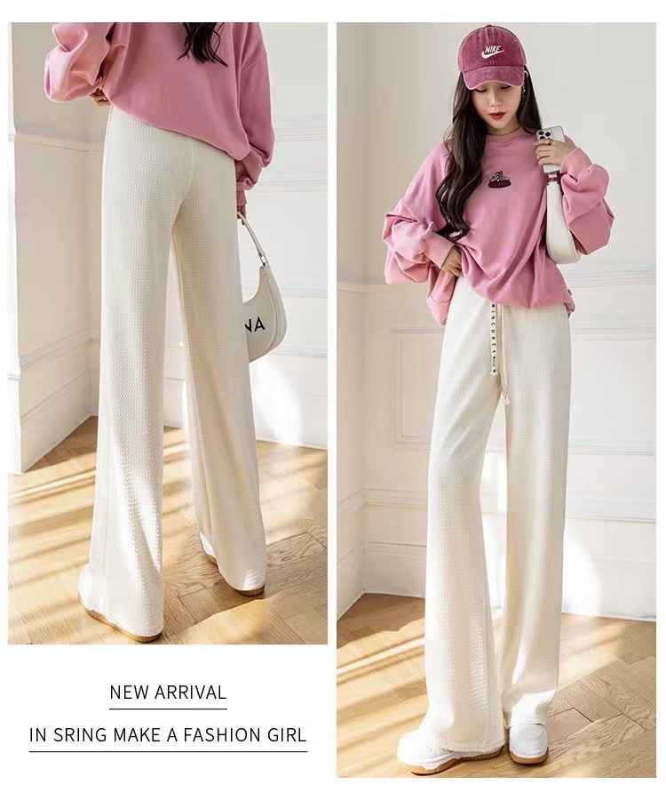 - 送料無料★即納 ロゴ紐 ロング丈 ウエストゴム ワイドパンツ ロングパンツ リブパンツ レディース ヘビロテ★ホワイト