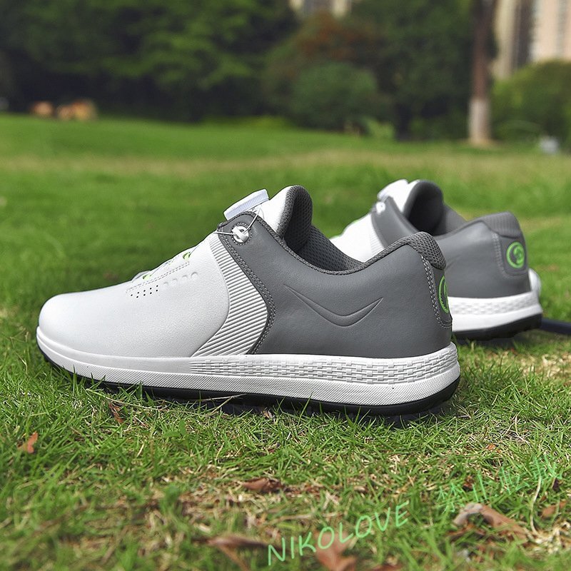 - 品 ゴルフシューズ ダイヤル式運動靴 メンズ 幅広い フィット感 軽量 牛革スポーツシューズ 防水 防滑 耐磨 弾力性24.5~28 LD760