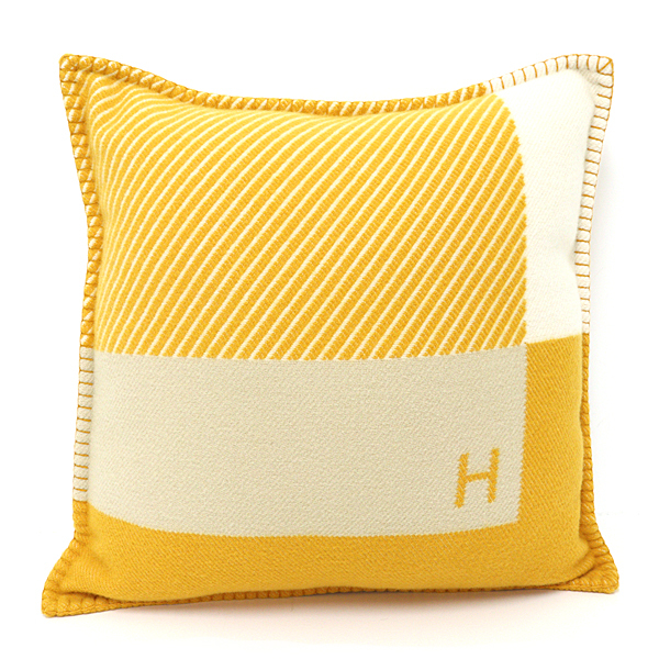 - エルメス HERMES クッション Hリヴィエラ 毛 カシミア H103423M ソレイユ 未使用品