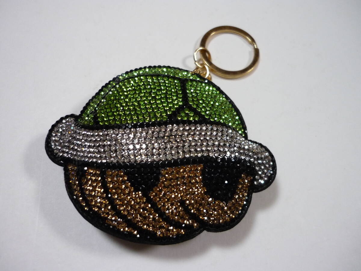 - [管00]【送料無料】キーホルダー スーパーマリオ ノコノコ 緑こうら キラキラ ラインストーン カメのこうら