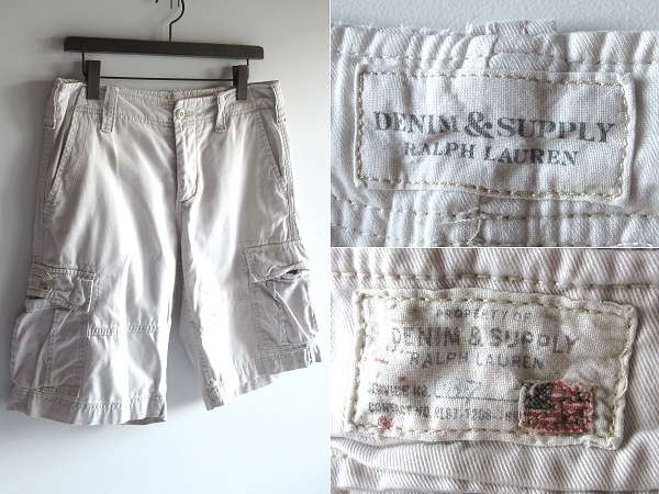 - DENIM&SUPPLY RALPH LAUREN デニム&サプライ ラルフローレン 星条旗/ロゴワッペン ビンテージ加工 カーゴショーツ ショートパンツ w29