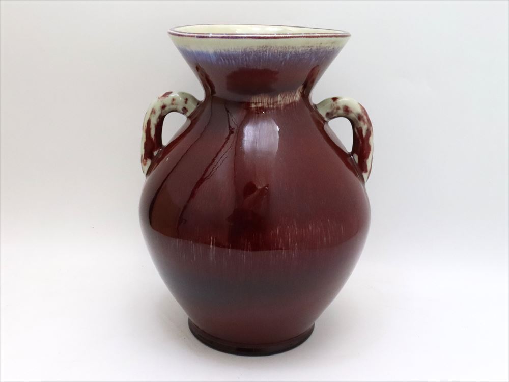 - 【No1337蔵出し】 『 中国 辰砂釉 双耳付花瓶 骨董品 アンティーク』