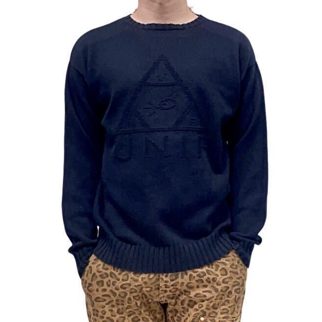 - 中古 UNIF ユニフ フリーメイソン ブランド ロゴ 編み込み コットン ニット セーター Sサイズ ワンオク TAKA ローラ 水原希子 愛用ブランド
