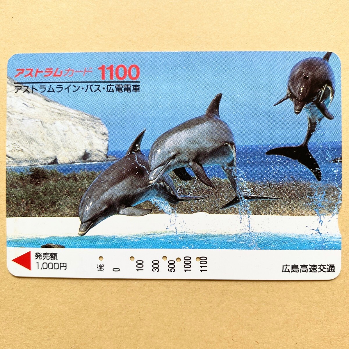 - 【使用済】 アストラムカード 広島高速交通 水面を跳ねるイルカ