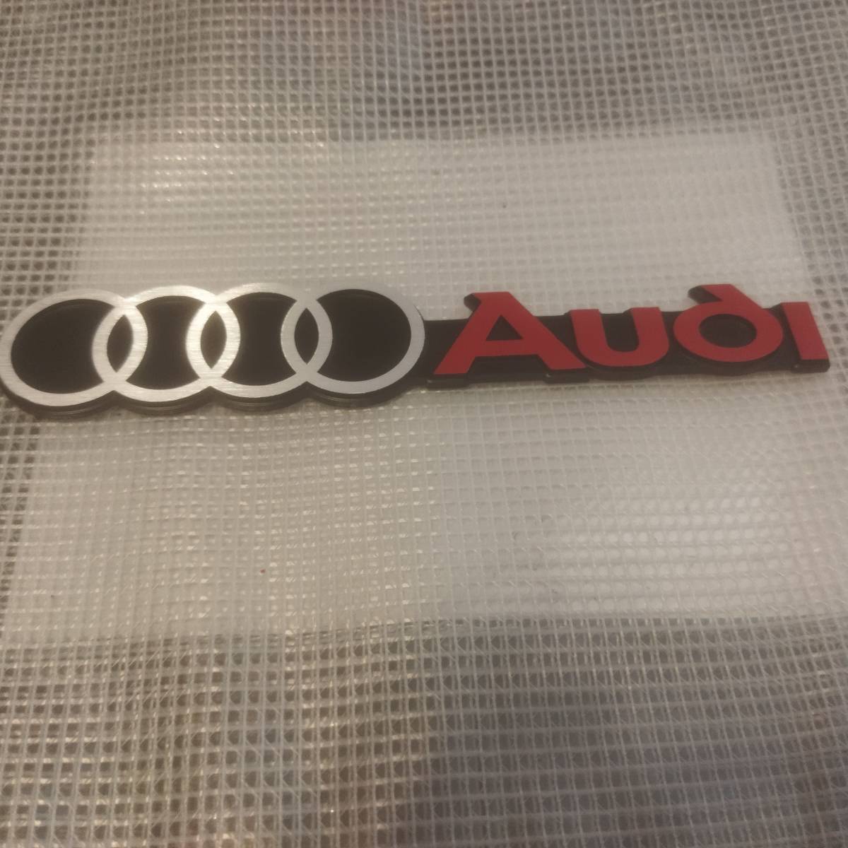 - 【ゆうパケット送料込】AUDI(アウディ) エンブレム 赤文字 縦3cm×横16cm×厚4mm アルミ製 送料無料 ⑥ アウディ