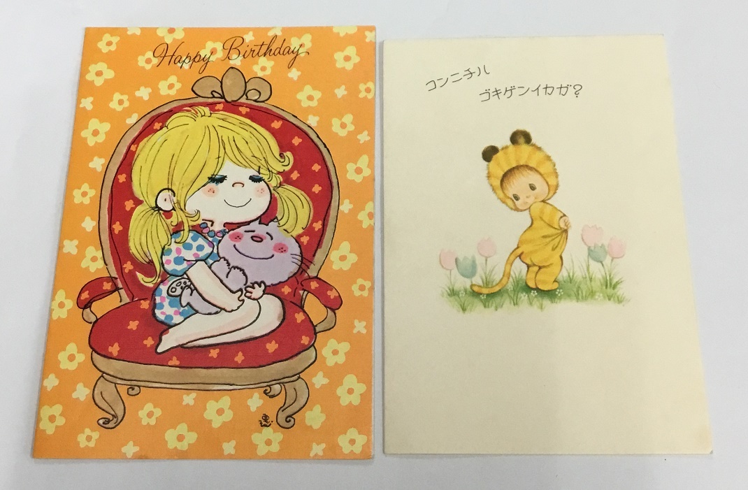 - 水森亜土 バースデーカード 誕生日カード 計2枚セット 昭和レトロ