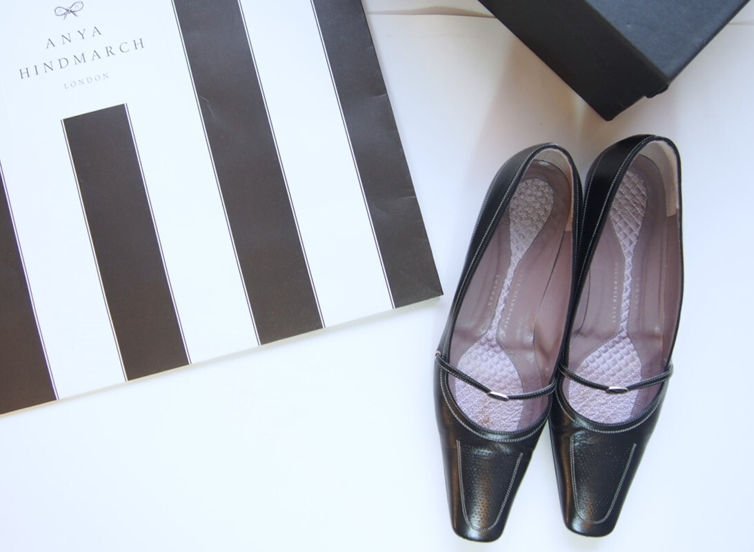 - 定価12万★アニヤハインドマーチ★端正なメリージェーン/ワンストラップ★黒★GOAT山羊革★ローヒールパンプスゴートレザーバレエシューズ