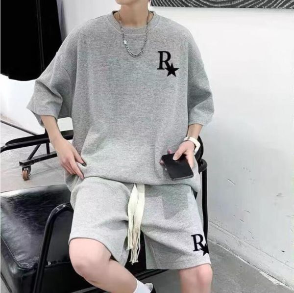 > グレー メンズ 上下セット セットアップ トップス+短パン 2点セット 大きいサイズ 半袖 夏 ゆったり カジュアル / M-5XLサイズ選ぶ
