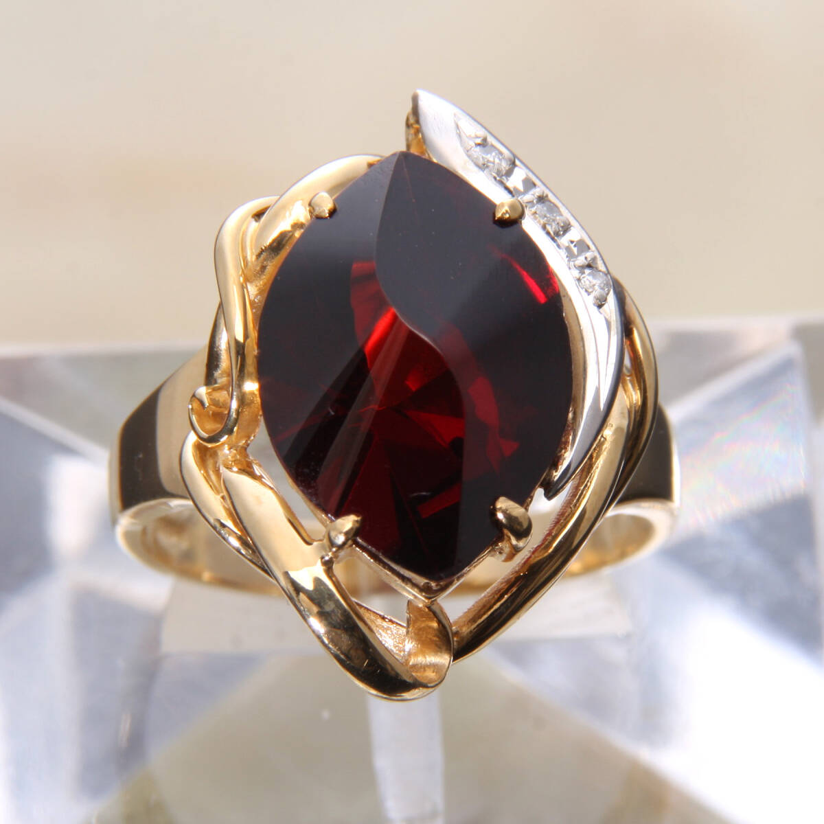 - ke9885◆K18/Pt900リング ガーネット&ダイヤモンド 12号
