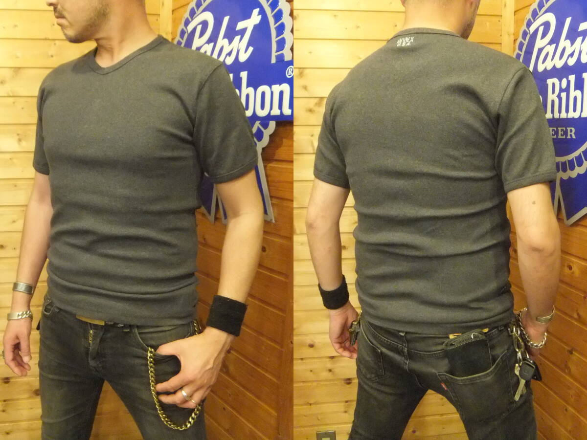 - アヴィレックス正規店 年間定番シリーズ!! リブ素材 Vネック半袖Tシャツ[チャコールグレイ][M]新品 6143501-19 ※〒レターパック発送